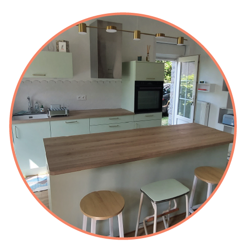 À l’ombre du cerisier protecteur, profitez de la terrasse pour travailler au calme, déjeuner entre amies et profiter de la Nature pour créer ou vous ressourcer.